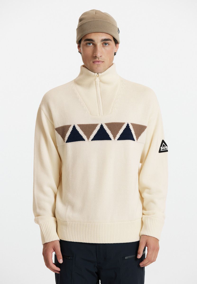 The windstopper "Aboda" will keep cold and wind away, It is designed for all genders and makes the perfect companion while skiing, snowboarding and pursuing other winter activities. The upper material consists of 50% merino wool and 50% acrylic, and it sports iconic "SOS" logo at the chest. The merino wool component gives the windstopper a natural breathability as well as temperature- and odor controlling properties. The inside extra layer in 100% polyester will keep you extra warm and protected from the wind. The cuffs are elastic and give you great comfort, and the sweater can be closed using a reliable YKK zipper.