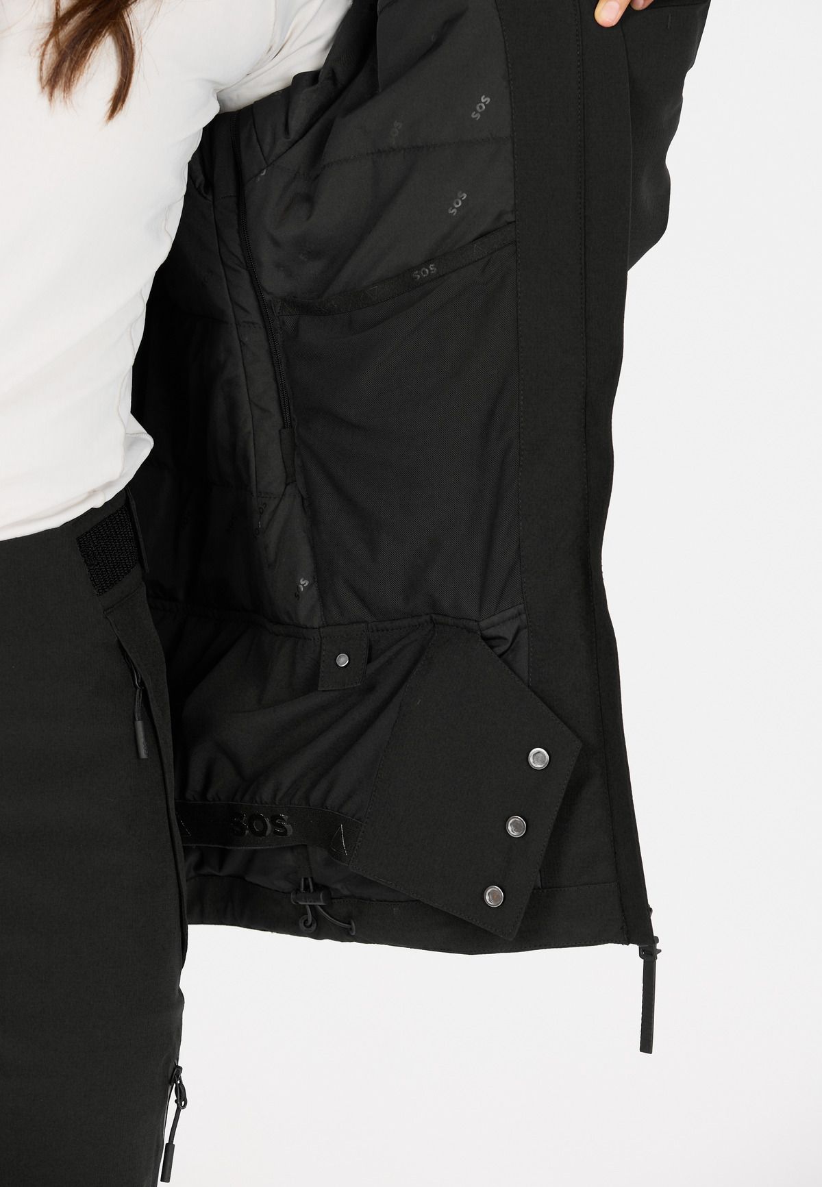 For added protection, a snow gaiter at the waist seals out snow and breezes when skiing in deep powder, ensuring a snug fit.