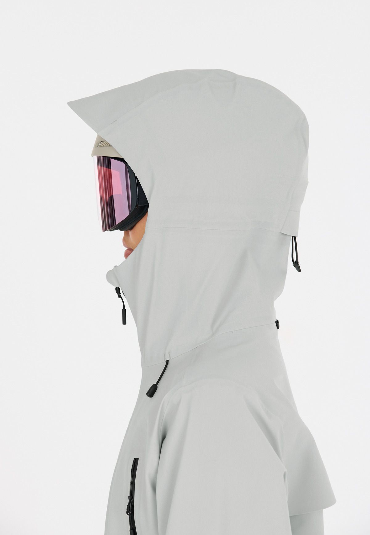 - Hood with drawstring