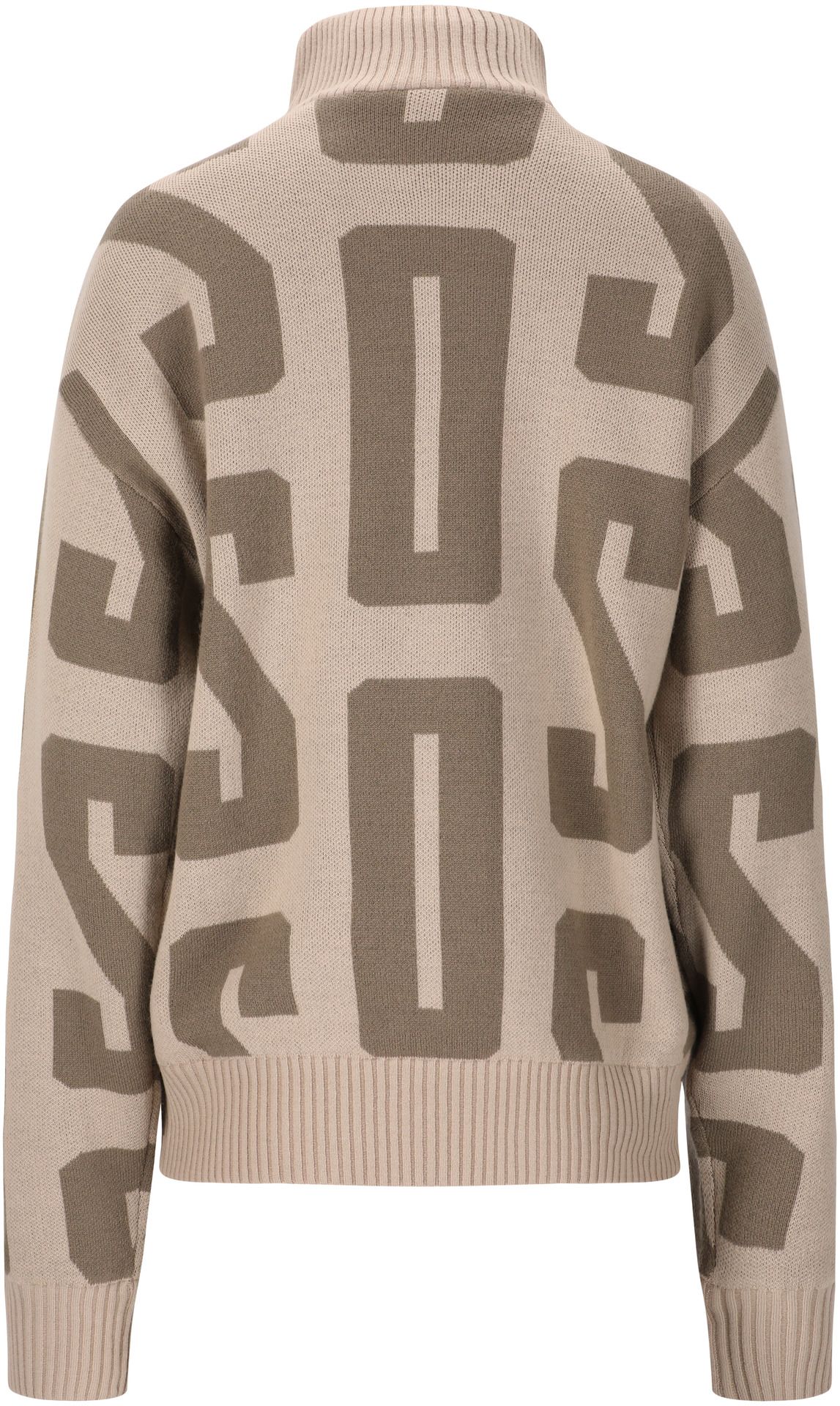 The upper material consists of 50% merino wool and 50% acrylic, and it sports iconic "SOS" lettering all over, apart from collar and cuffs. The merino wool component gives the windstopper a natural breathability as well as temperature- and odor controlling properties. The inside extra layer in 100% polyester will keep you extra warm and protected from the wind.